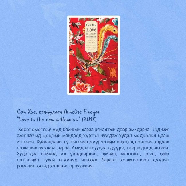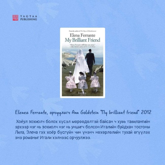 Өнгөрсөн аравны турш англи хэлнээ орчуулагдсан арван шилдэг зохиолыг “Lithub” утга зохиолын цахим хуудаснаас нэрлэжээ.