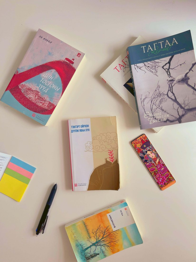 Ножо” хэвлэлийн газраас гаргасан “Сувд”, Монсударын утга зохиолын цувралын “Шатар”, “Манай бүдэрсэн баатар” гээд номуудыг хамт уншаад дуусгасан. Одоо Нацүмэ Соосэки зохиолчийн “Кокоро”, Стивен Кинг “Бичихүйн тухай” номуудыг уншиж байна.