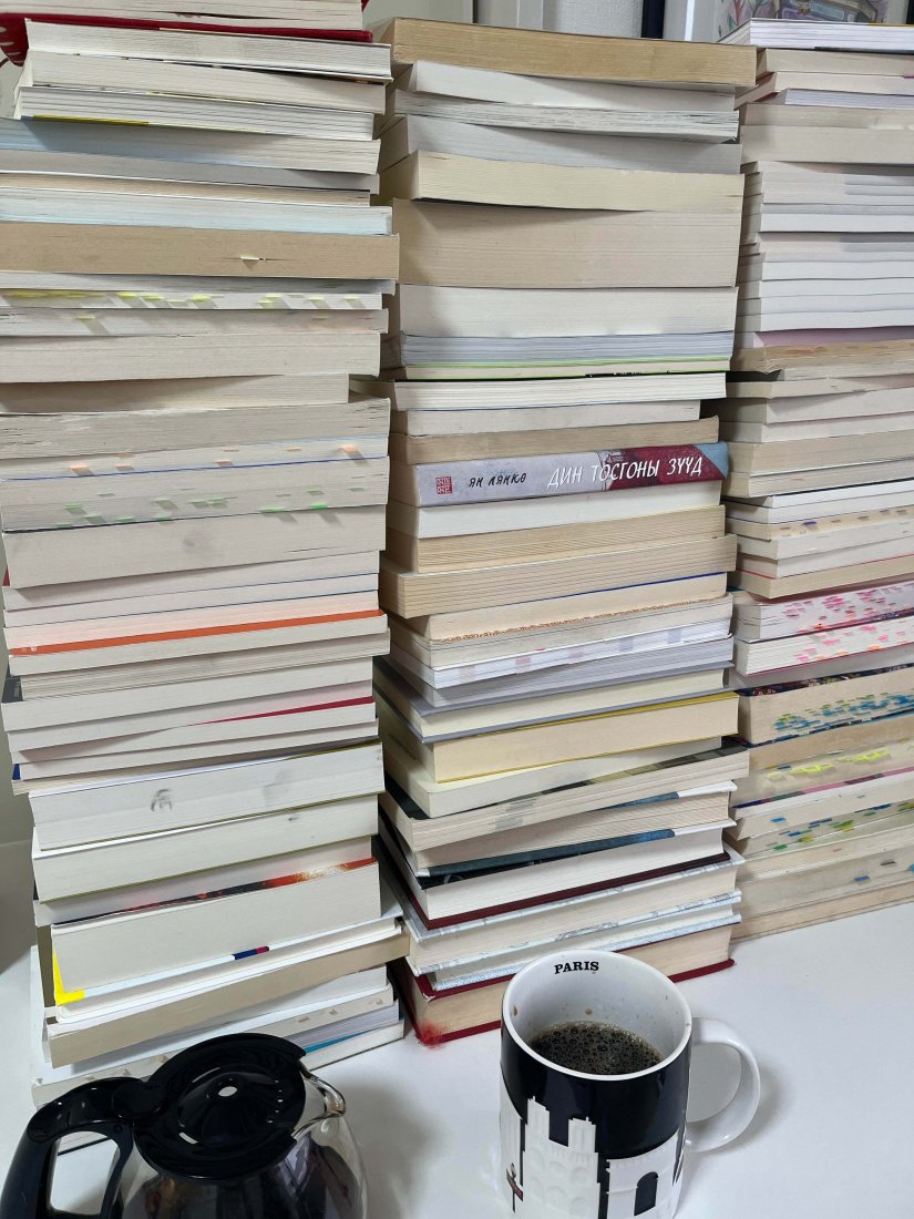 Гадаадад амьдардаг болохоор нүүдэл суудал их. Ном ачаа болдог учраас эхэндээ уншаад шууд зардаг байсан. Ажил амьдрал тогтоод сүүлийн хоёр жил номоо цуглуулж байна. Энэ асуултад хариулах гээд анх удаа тоолж үзлээ. 250 гаруй ном байдаг юм байна. Одоохондоо номын тавиур байхгүй. Сэтгэл доторх төсөөллөөр бол нэг хана дүүрэн номын сантай болмоор байдаг. Японд их газар хөдөлдөг болохоор номын сан хийж зүрхлэхгүй л байна. Ихэнхдээ ширээн дээрээ өрчихдөг. Гэрийнхээ тавилгуудын байрлалыг солихоор сэтгэл санаанд нөлөөлдөг шиг номоо хана дагуулж эсвэл ширээн дээр янз бүрээр өрж өөрийгөө баясгаж амьдардаг даа.