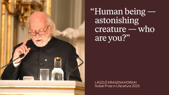 2025 оны Нобелийн утга зохиолын шагналыг хүртэхдээ би та бүхэнд итгэл найдварын тухай ярихаар зэхэж байсан ч итгэл найдвар минь нэгэнтээ бүр мөсөн бөхсөн тул сахиусан тэнгэрүүдийн тухай ярихаар энд зогсож байна.
